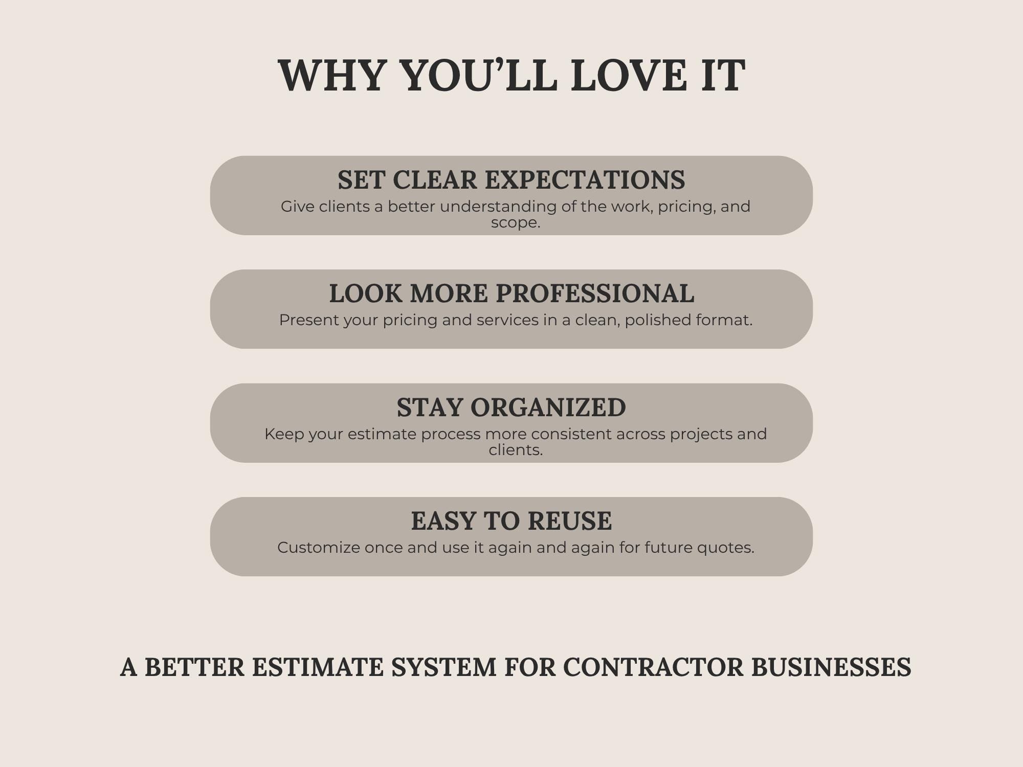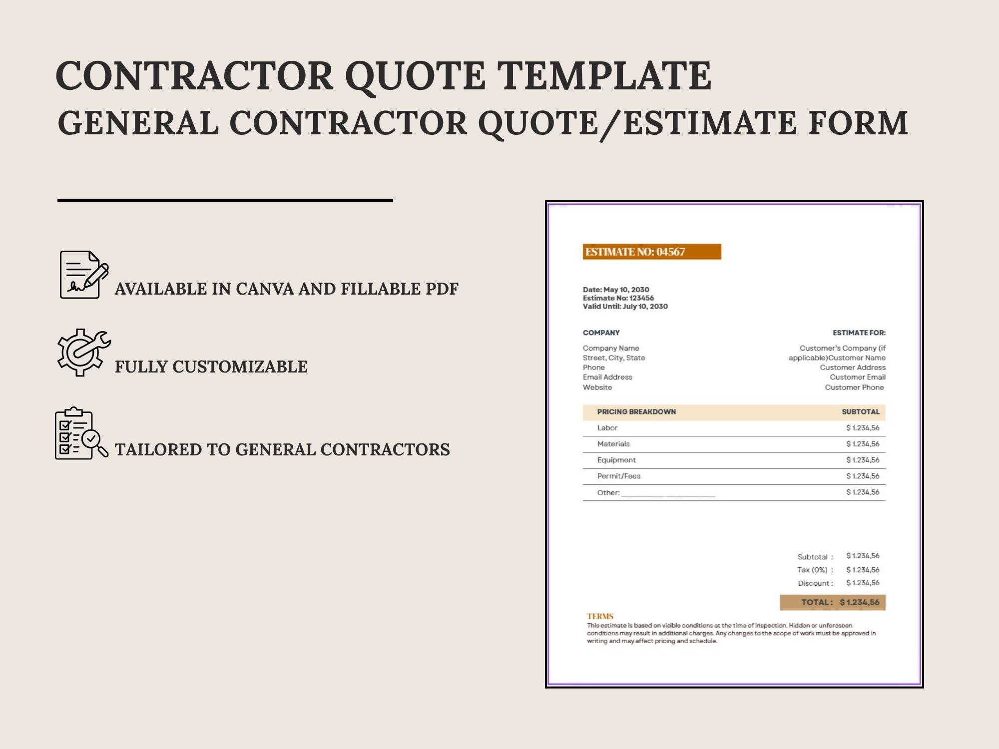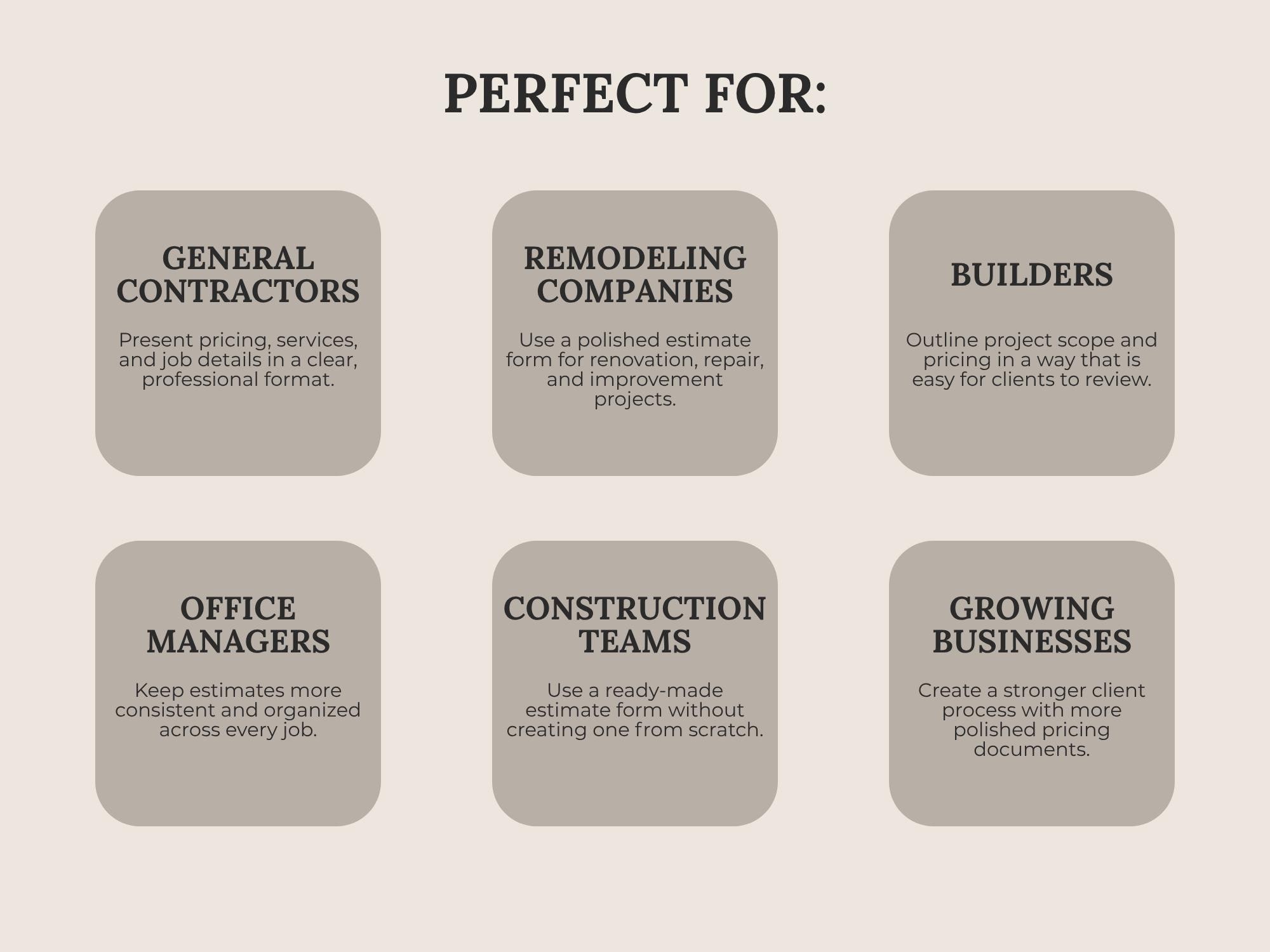 Send clear, professional estimates with a clean scope and pricing layout. This Contractor Estimate/Quote Template is built for line items, totals, and approval so clients can say yes faster.