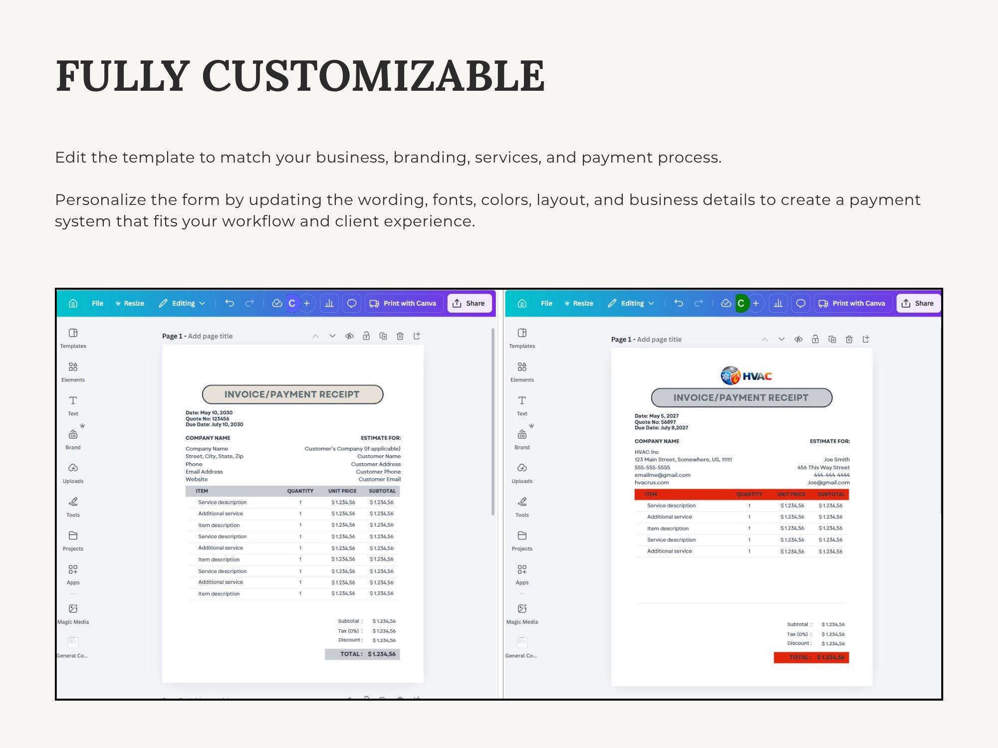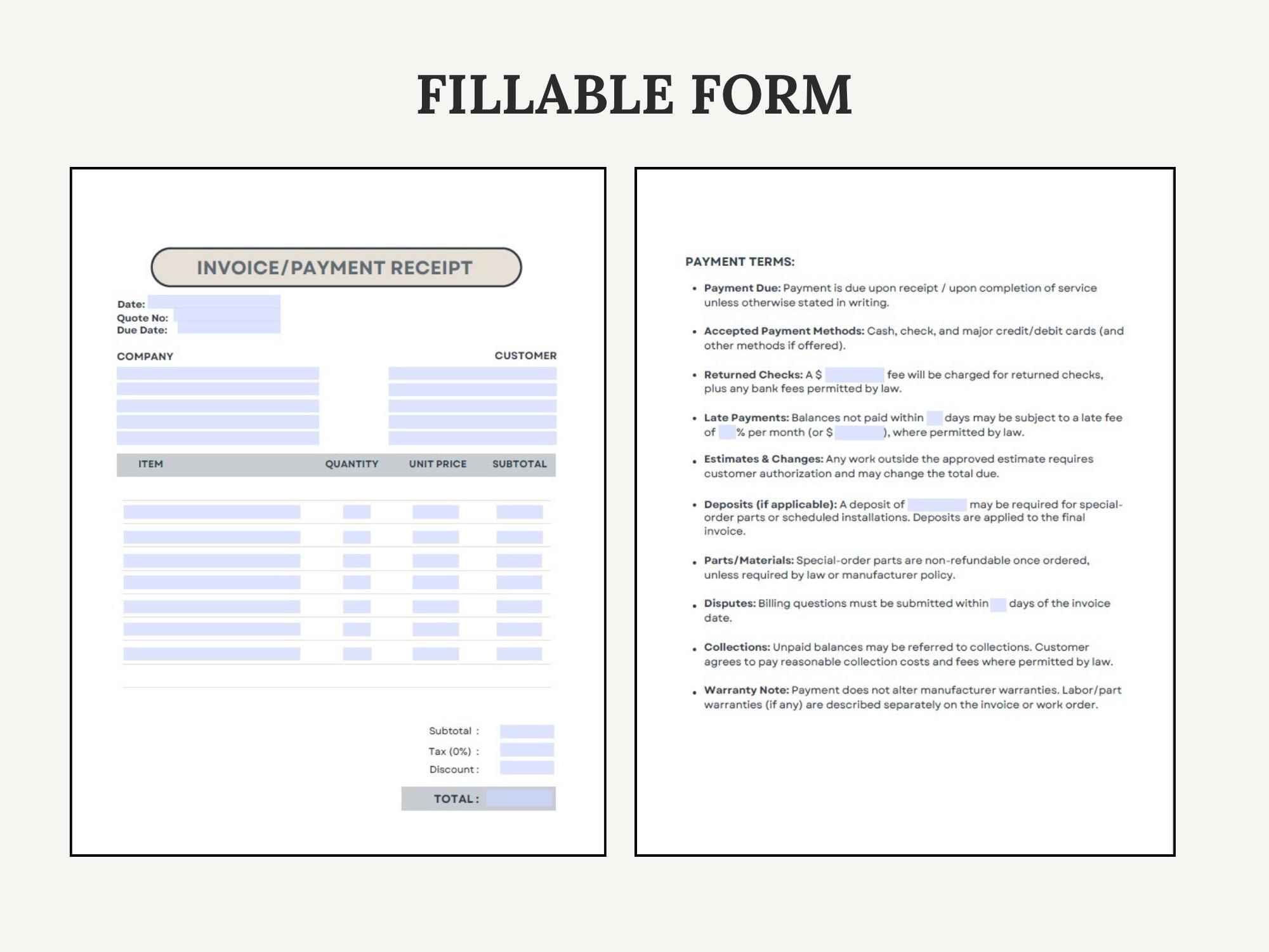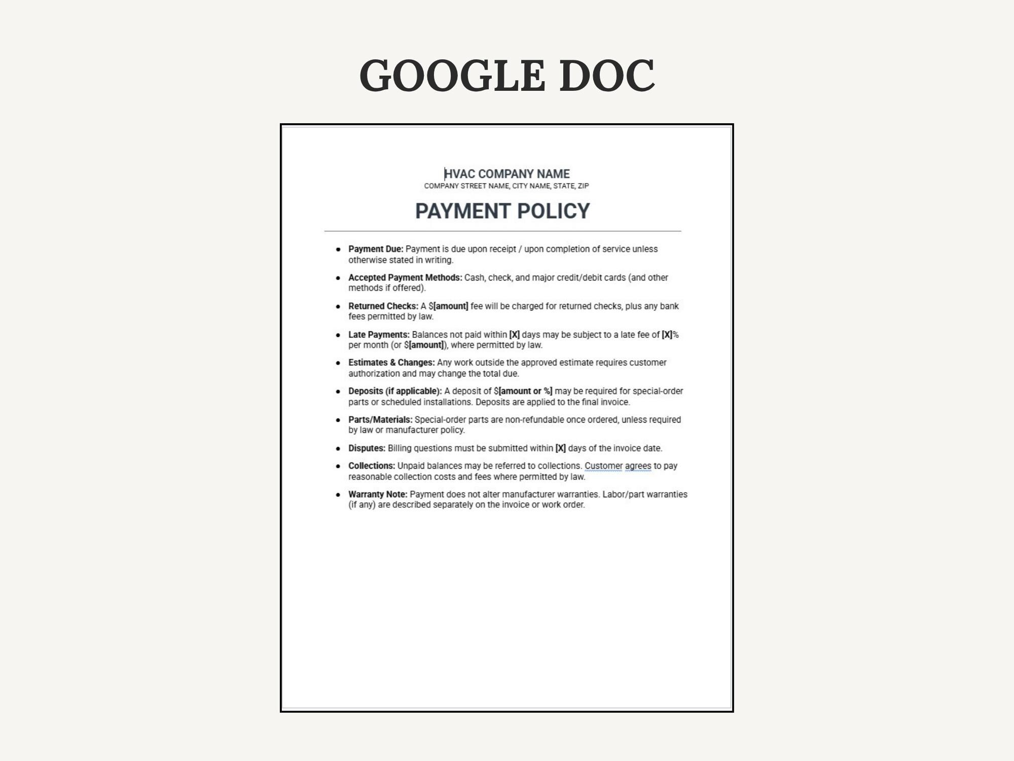 Get paid faster with a clean HVAC Invoice / Payment Forms + Payment Policy set. Designed to help you invoice professionally and communicate deposits, due dates, late fees, and accepted payment methods clearly. Includes Canva for branding, Google Doc for quick edits, and fillable PDFs for immediate use.