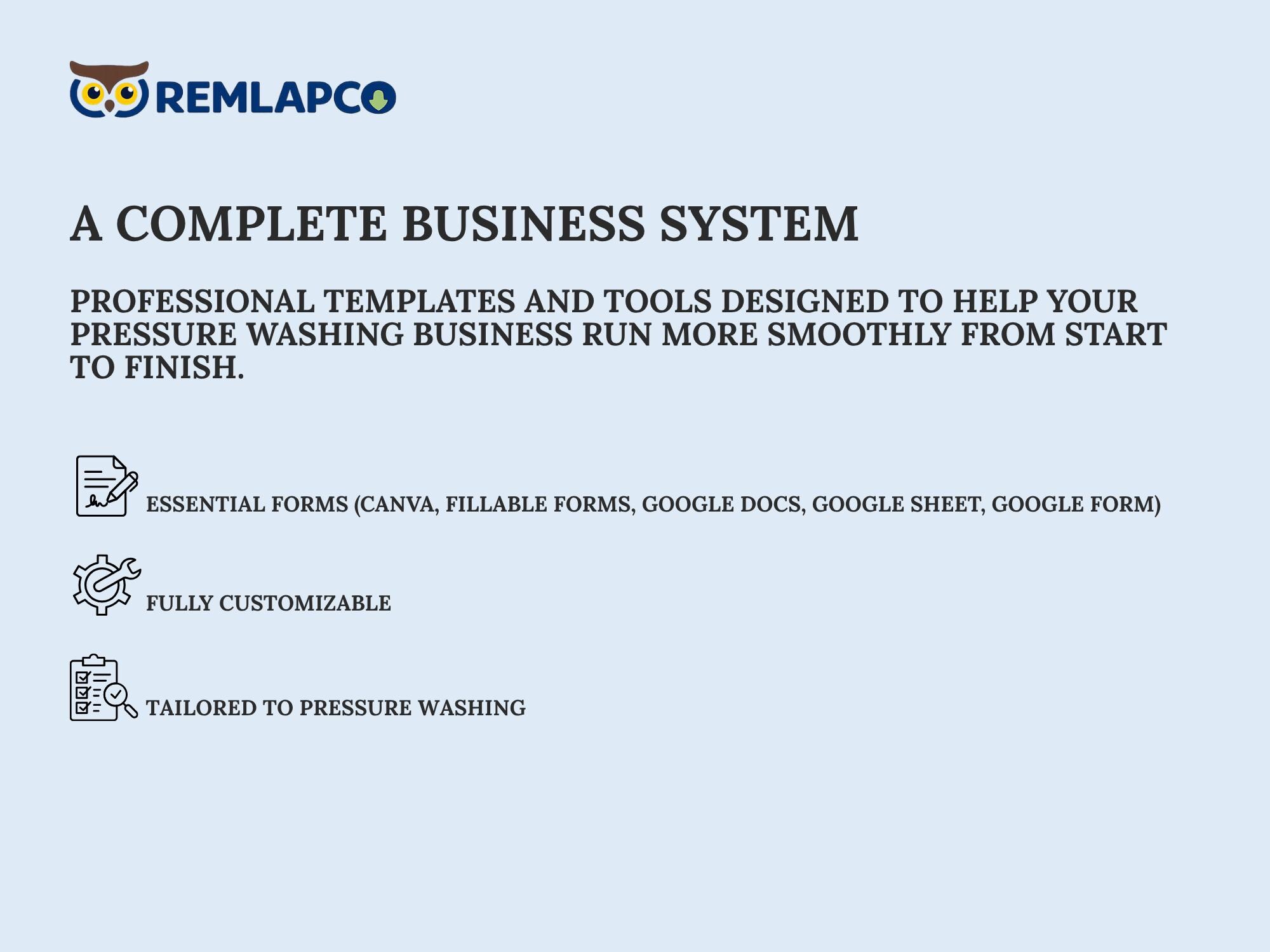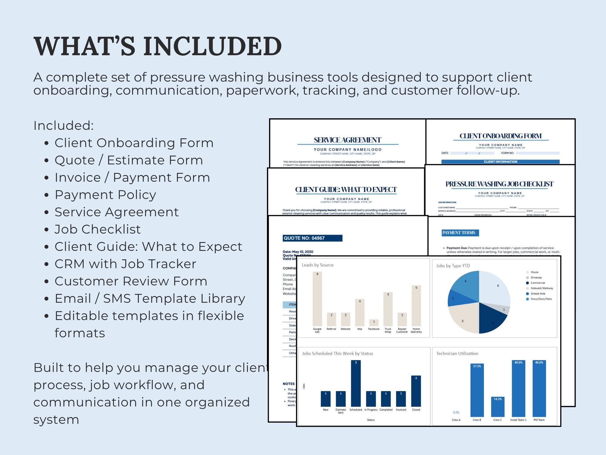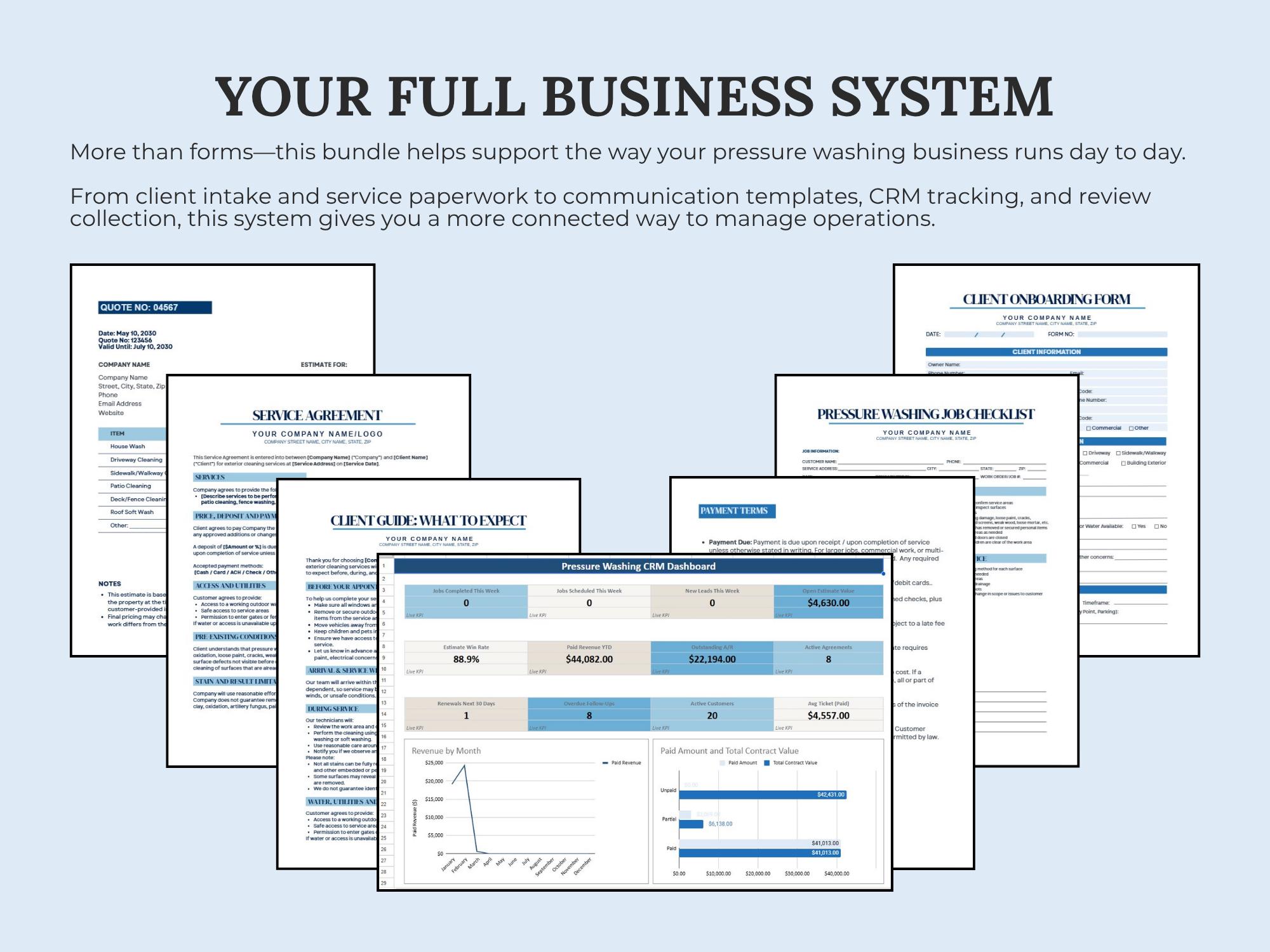 Everything in the Pro kit plus a CRM dashboard, review form templates, and a customer messaging library. Built to help you stay organized, follow up consistently, and look professional at every step.