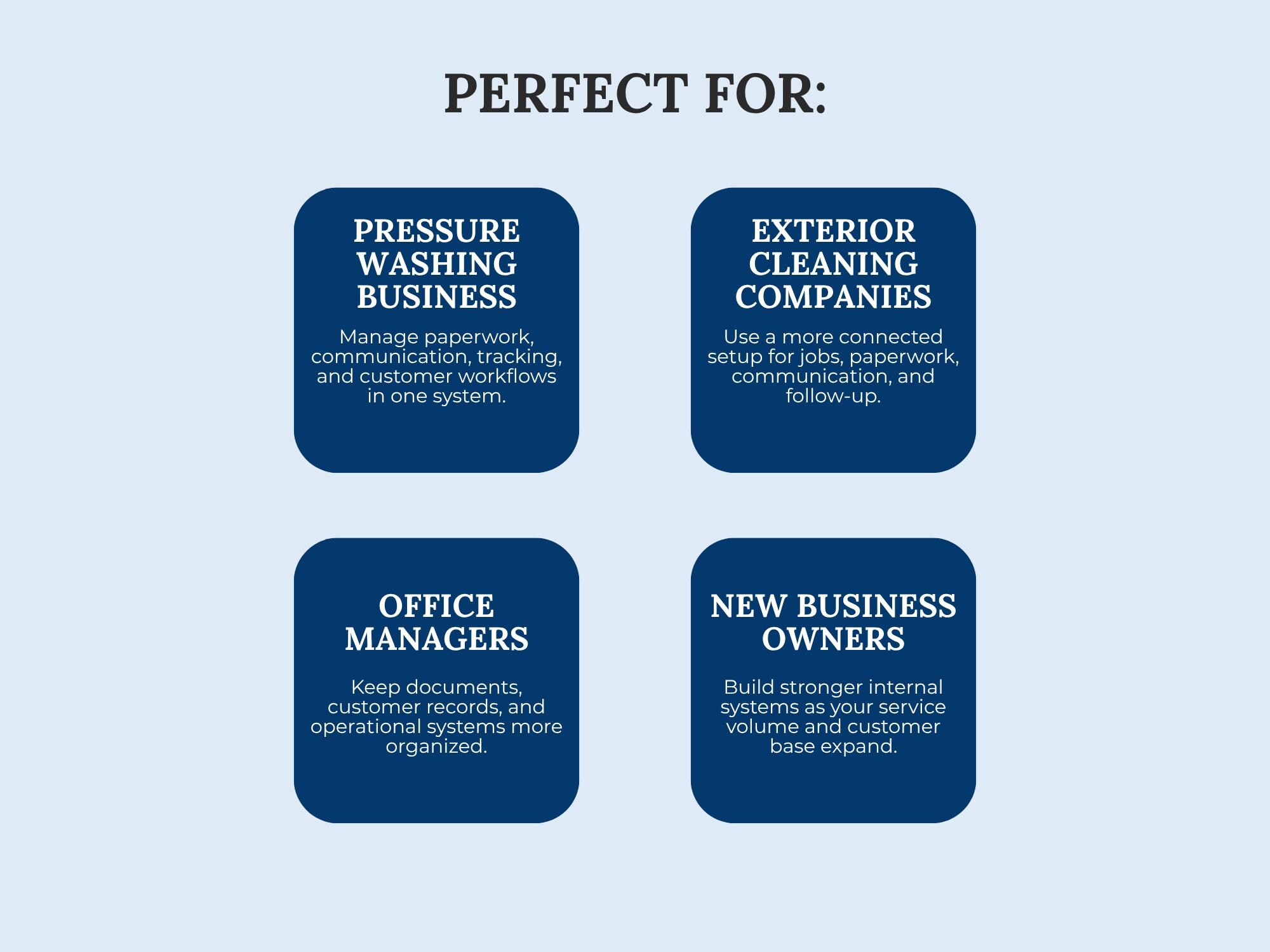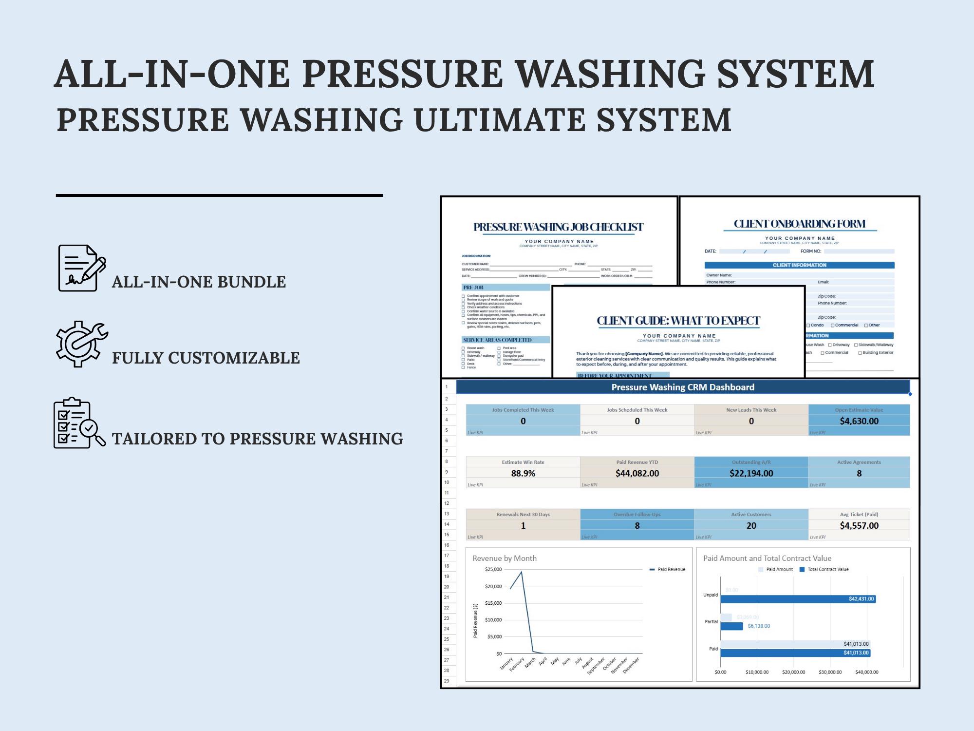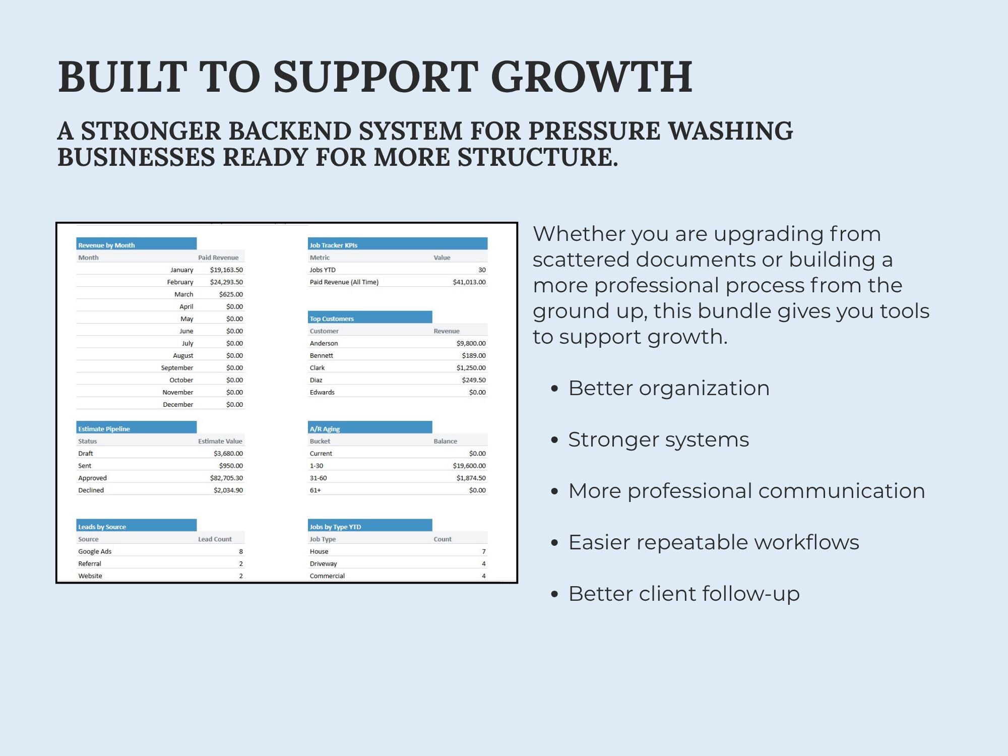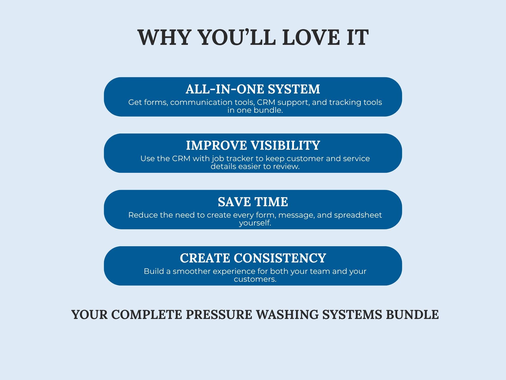 Everything in the Pro kit plus a CRM dashboard, review form templates, and a customer messaging library. Built to help you stay organized, follow up consistently, and look professional at every step.